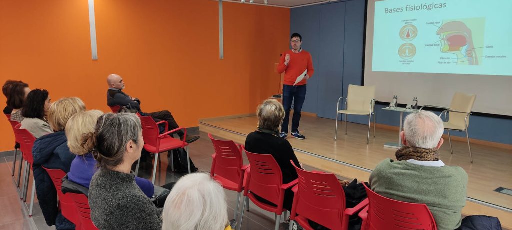 Utilizando diapositivas, Cremades ha explicado cómo se utiliza la cabeza para ampliar el registro de sonidos y ser capaz de producir un tono de voz tan peculiar. Así mismo, ha deleitado a los presentes con la ejecución de un par de piezas.