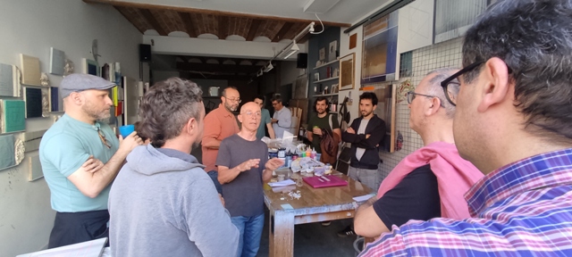 El pasado 9 de mayo, un grupo de personas vinculadas a CLAR visitó el estudio del artista Javier Chapa, ubicado en el barrio de Ruzafa, en Valencia.